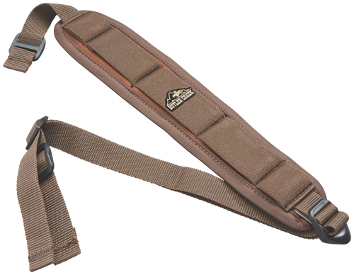This neoprene rifle sling features a stretchable Comfort Stretch backing with soft padding that reduces felt weight by up to 50%, making it comfortable for extended carry during hunting and hiking. It includes a quick detach swivel and non-slip grippers to keep the sling firmly in place. The sling is 44 inches long and 2.5 inches wide, designed for any rifle equipped with a stud mount.