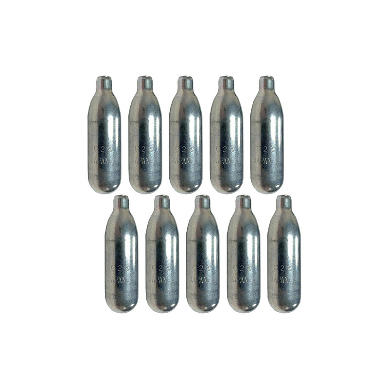 Pack of 10 Byrna 8-gram CO2 cartridges designed for Byrna HD Series, CL, and SD models. Includes oiler for maintenance. These cartridges are essential accessories for powering Byrna non-lethal self-defense devices.