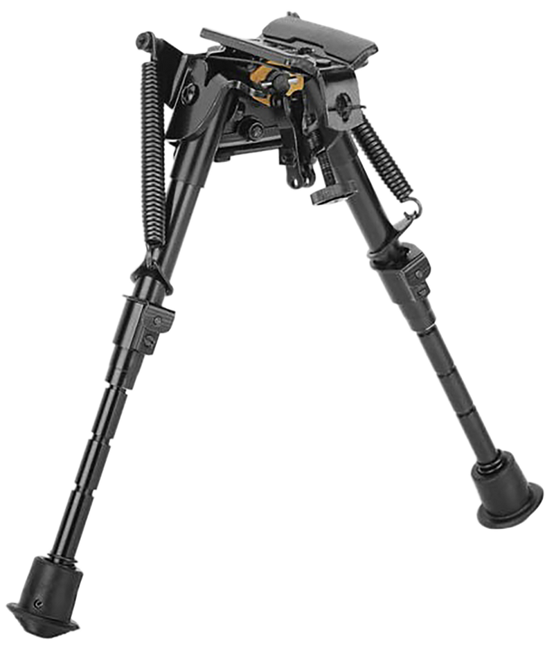 The Caldwell XLA is a lightweight aluminum bipod that attaches to firearm sling swivel studs and provides stable shooting support with instant spring-loaded leg deployment. The legs feature notches for height indexing and collapse forward for convenient carry. Height adjustment ranges from 9" to 13" with padded cradle blocks and rubber feet.