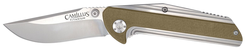 The Camillus Sevens is a 2.75" folding knife featuring an AUS-8A stainless steel blade with a plain edge and carbonitride titanium coating. The knife has an overall length of 7" when open and includes a desert tan G10 handle with stainless steel liners for a durable, lightweight EDC option.