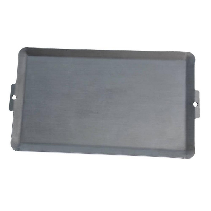 This steel griddle is designed for use with Camp Chef Outdoor Camp Ovens and features an 11.5" x 19.5" cooking surface with raised edges to contain food and minimize mess. The griddle heats evenly and is ready to use out of the box, suitable for pancakes, paninis, burgers, and other outdoor cooking applications.