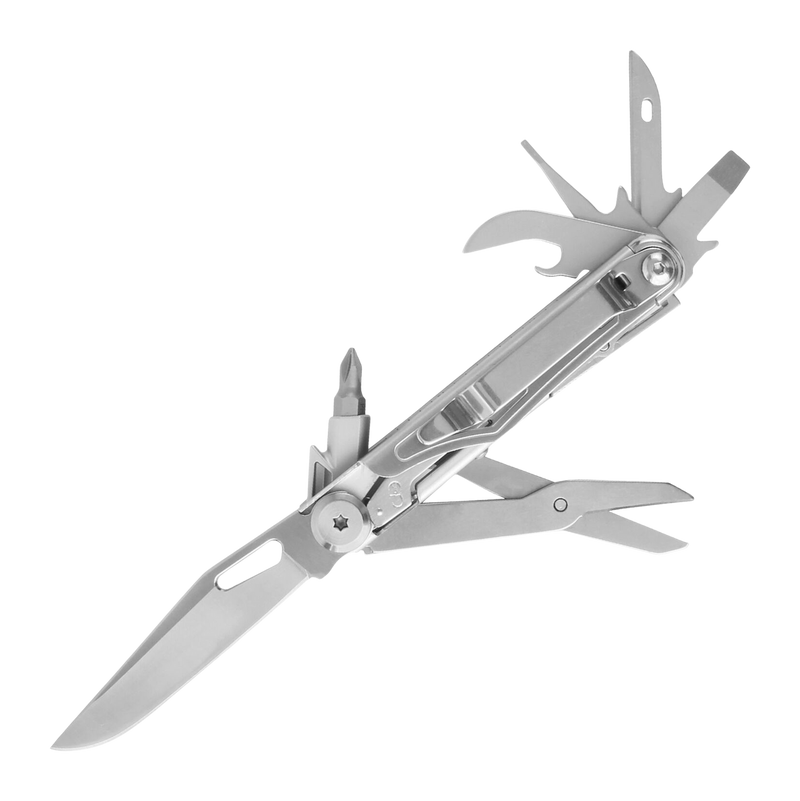 The Uzi multi-tool combines multiple functions into a compact design suitable for camping, outdoor activities, and tactical use. This accessory tool features the iconic Uzi branding and is designed as a versatile pocket or pack addition for users needing multiple utilities in one tool.