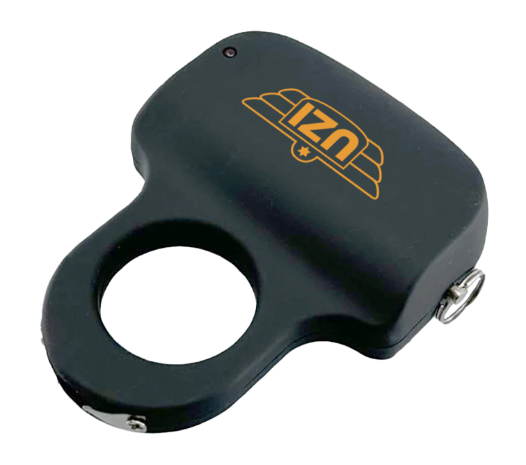 This is a compact stun device designed in a keyring format for personal protection. The Sting Ring delivers an electrical shock to deter threats and is intended for self-defense use. Dimensions and exact voltage specifications are not provided in available source data.