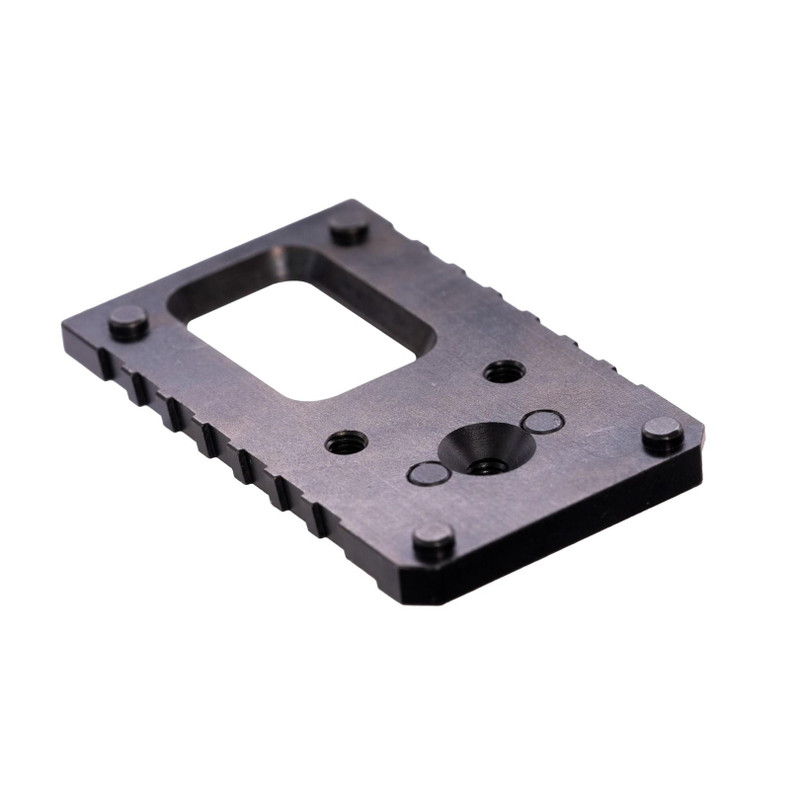 This optic base plate is designed for Canik TP9 pistol models that are not optic ready, including TP9 V2, TP9 SA, TP9 DA, TP9 SA MOD 2, TP9 SF, TP9 SFT, and TP9 SFL. It is compatible with optics using the MECANIK MO2, Vortex, and Truglo mounts. The steel construction features an oxide finish and provides a 1-piece mounting solution.