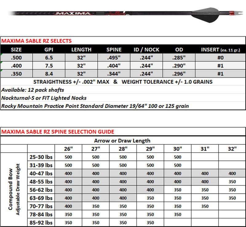 The Maxima Sable RZ features Carbon Express's exclusive TriSpine technology with 360-degree spine consistency for stabilized flight and lightweight hunting performance. Constructed with 3K carbon weave for strength and speed, these arrows deliver consistent accuracy. Package includes 12 arrows at 32" length.