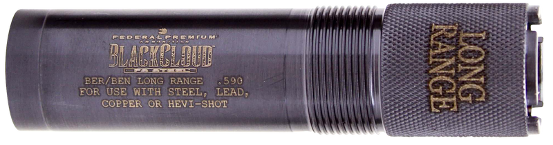 Carlson's Black Cloud long range choke tube designed for Beretta/Benelli Mobil 20 gauge shotguns. Features titanium-coated steel construction with .590" constriction diameter optimized for extended range shooting. Installs using the MobilChoke system for quick, tool-free removal and replacement.