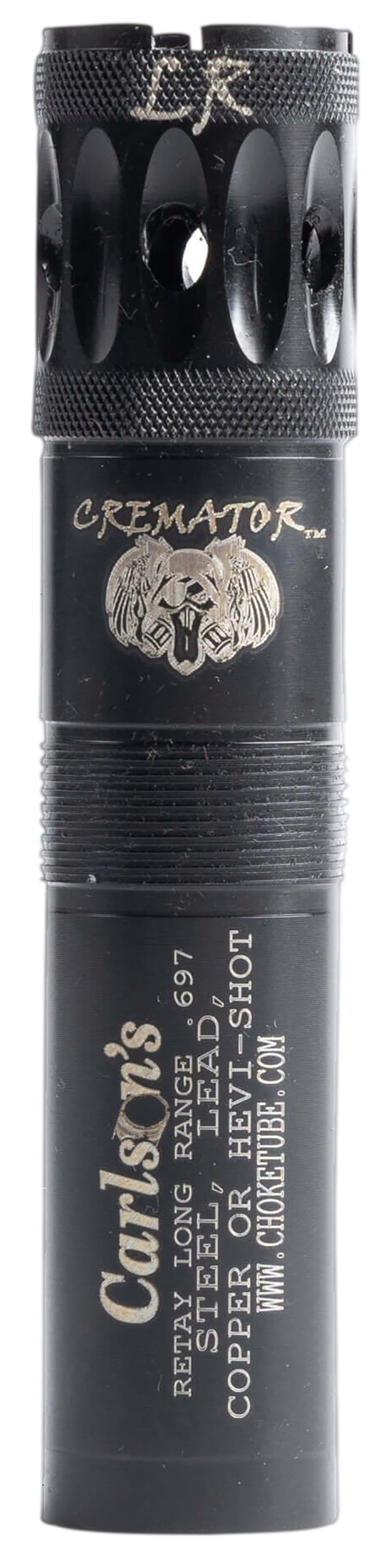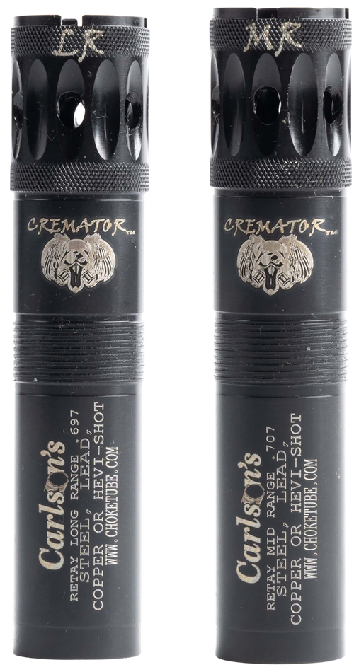 This Carlsons Cremator choke tube is a ported, long-range constriction tube manufactured from 17-4 stainless steel for enhanced durability and corrosion resistance. The tube features a .697" constriction diameter and comes as a 2-pack. Installation is a simple push-fit design compatible with Retay shotguns.