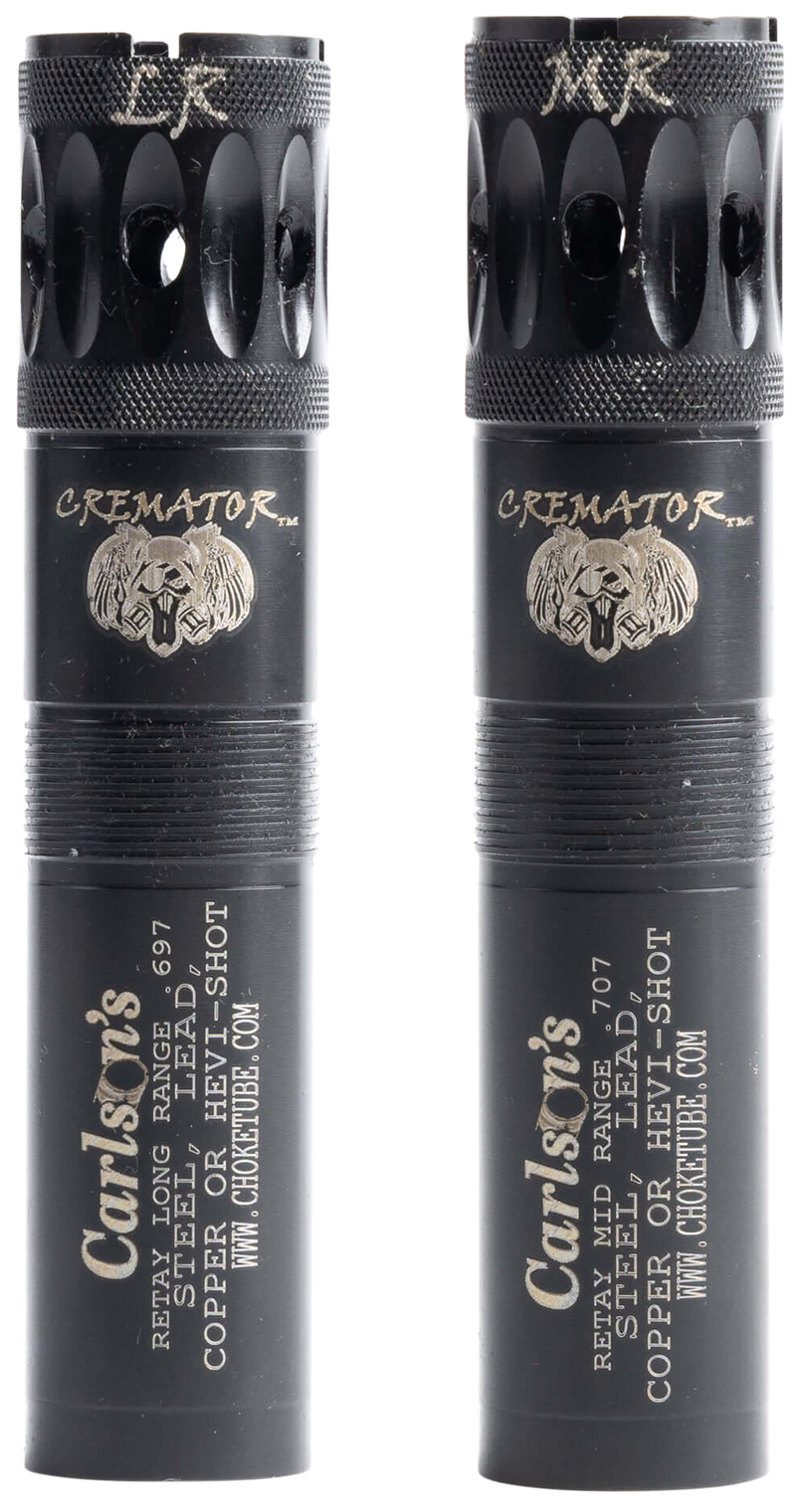 Carlson's Cremator choke tubes are designed for Retay shotguns and provide close, mid, and long-range constriction options. Constructed from 17-4 stainless steel with ported design for reduced recoil and muzzle rise. This set includes 3 choke tubes for versatile shooting performance.