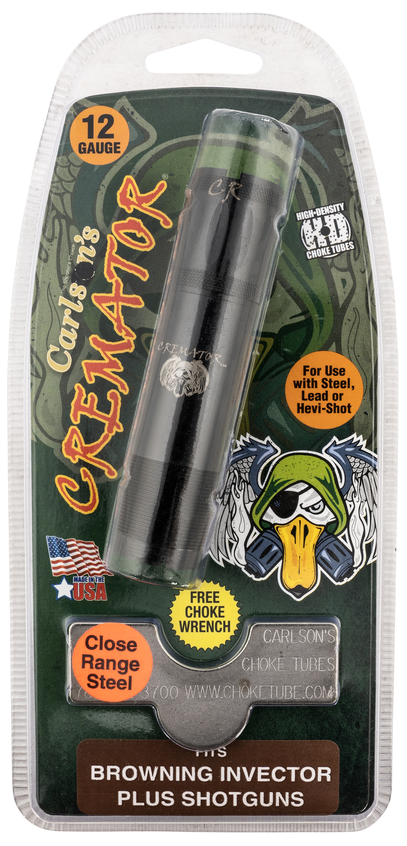 Carlson's Cremator is a non-ported choke tube designed for close range shot pattern control on Browning Invector Plus shotguns. Constructed from 17-4 stainless steel with a constriction diameter of .735", it delivers reliable performance for hunting and sport shooting applications.