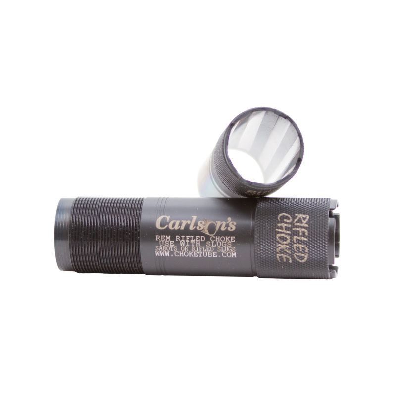 Carlsons rifled choke tube designed for Remington Rem Choke 12 gauge shotguns. Manufactured from 304 stainless steel with a rifled constriction (.730 diameter) that imparts spin to slugs for improved stability without damaging the firearm. Provides tight tolerances and dependable patterns for lifetime use.