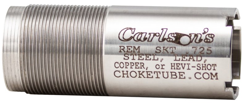 Carlson's flush-mounted choke tube designed for Remington 12 gauge shotguns in Skeet constriction. Manufactured from corrosion-resistant 17-4 PH stainless steel and compatible with both steel and lead shot. Backed by a lifetime warranty.