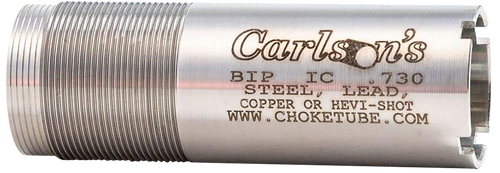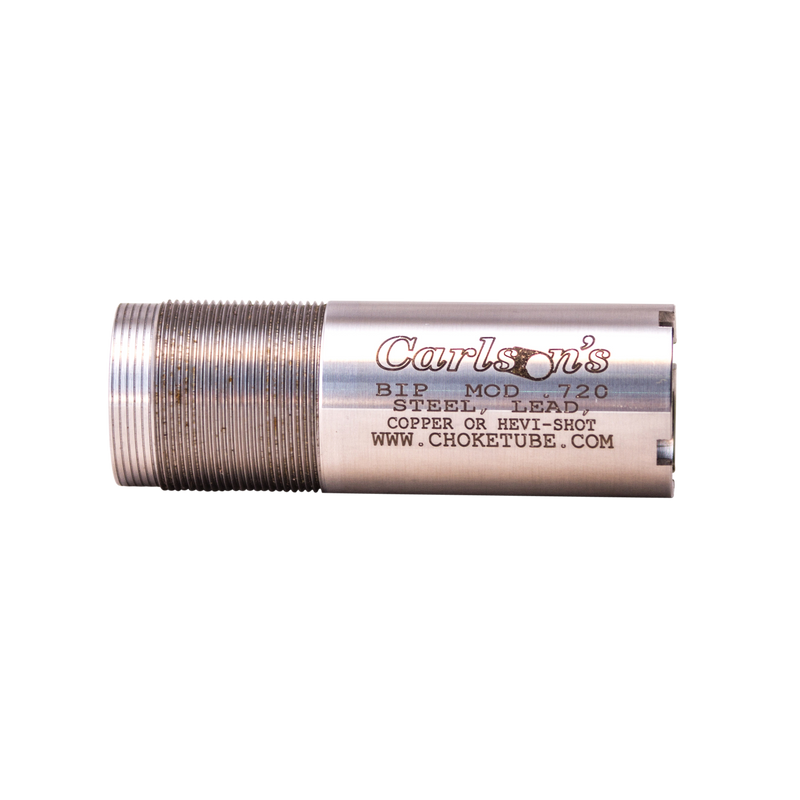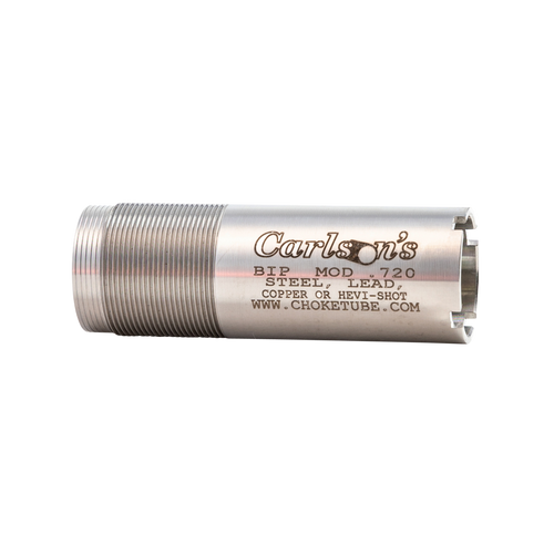 This Carlson's flush-mounted choke tube is designed as a replacement for Browning Invector Plus 12 gauge shotguns and features a modified constriction to tighten shot patterns. Manufactured from corrosion-resistant 17-4 stainless steel, it is compatible with both steel and lead shot and installs directly into the shotgun's choke tube port. The product is backed by a lifetime warranty.