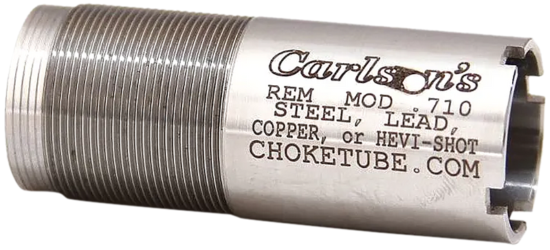 Carlson's flush-mounted choke tube designed for Remington 12-gauge shotguns with Modified constriction (.710" diameter). Manufactured from corrosion-resistant 17-4 PH stainless steel and compatible with both steel and lead shot. Features a lifetime warranty and tightens shot patterns for efficient performance at long or short distances.