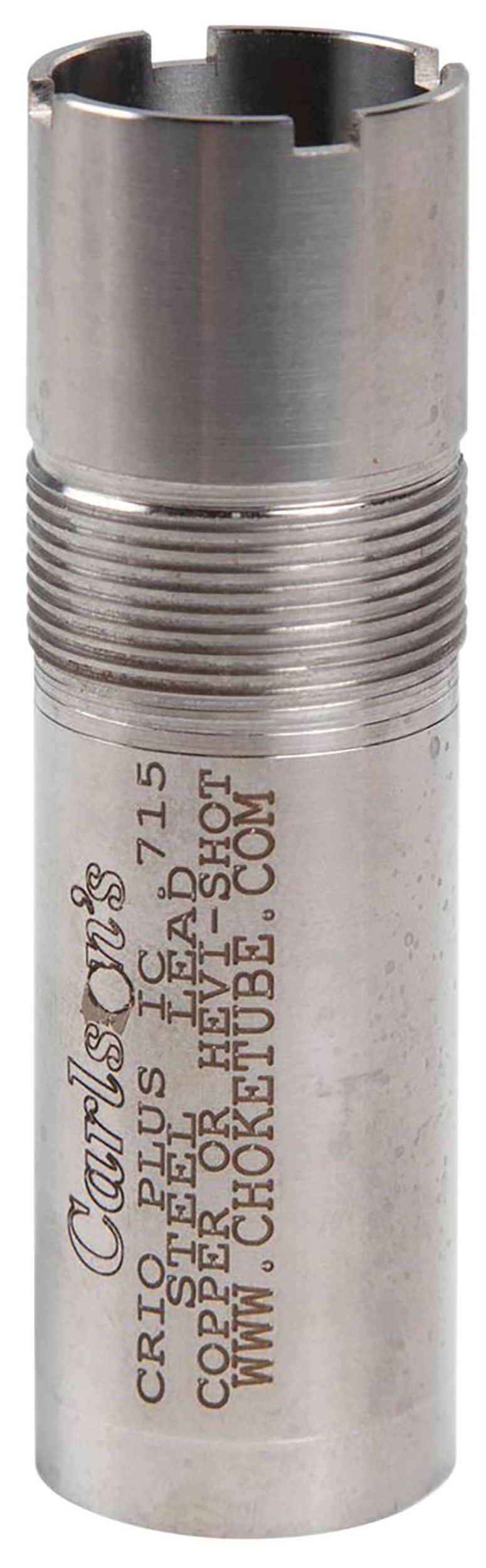 Carlson's flush-mounted choke tube designed for Benelli Crio and Crio Plus shotguns in 12 gauge with modified constriction. Manufactured from corrosion-resistant 17-4 stainless steel and compatible with both steel and lead shot. Features a 25% larger parallel section compared to previous models and includes a lifetime warranty.