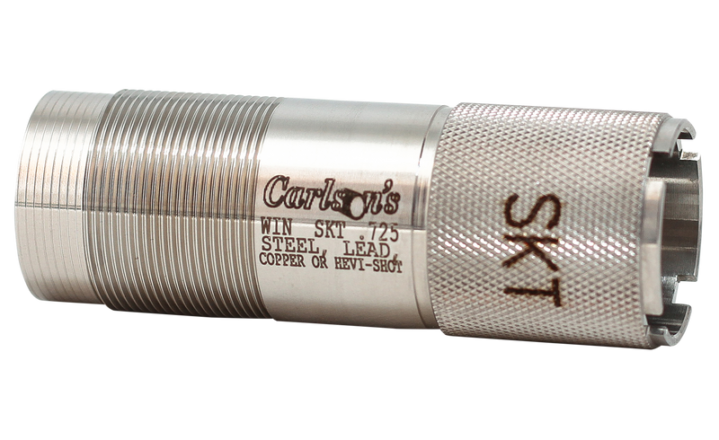 This Carlson's 12 gauge choke tube is designed for sporting clay shooting with a skeet constriction pattern. Manufactured from durable 1704 stainless steel, it features a parallel section 25% longer than previous models to deliver more consistent shot patterns. Compatible with Winchester and Browning Invector .725 shotguns.