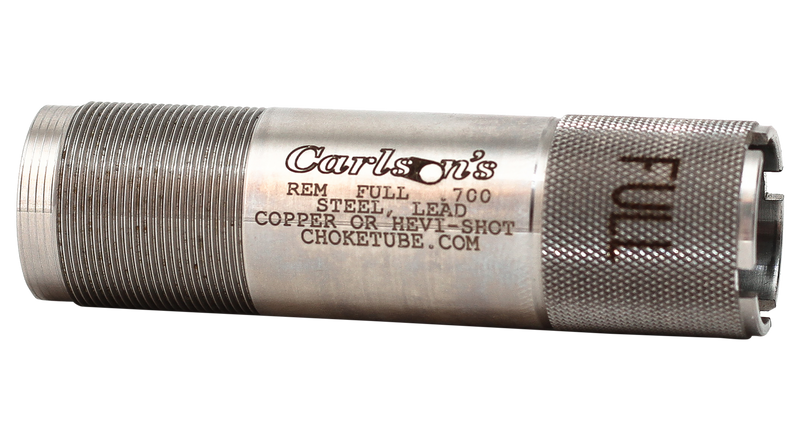 Carlson's Sporting Clays choke tube for 12 gauge Remington shotguns with Full constriction. Manufactured from 17-4 stainless steel and precision machined with a 25% larger parallel section to produce more consistent shot patterns than standard choke tubes. Features knurled end for easy removal and laser-marked constriction designation.