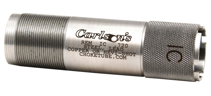 Carlson's Sporting Clay choke tube for 12 gauge Remington shotguns with Improved Cylinder constriction. Manufactured from 17-4 stainless steel with precision machining and a 25% larger parallel section for more consistent patterns. Features knurled end for easy removal and laser-marked constriction for quick reference.