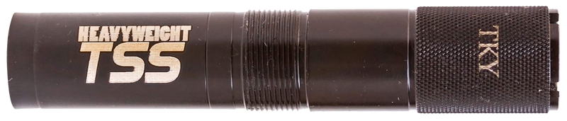 This is a 20 gauge extended choke tube designed for Benelli Crio Plus shotguns with a .555 constriction diameter optimized for turkey hunting. Constructed from 17-4 stainless steel with a black finish, it is specifically engineered for Federal Premium Heavyweight TSS (Tungsten Super Shot) turkey loads with shot sizes 7-9, though it works with other manufacturers' turkey ammunition. The tube extends the effective range to approximately 40 yards.