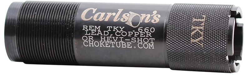 This is an extended choke tube designed for 12 gauge Remington shotguns with a .660 constriction diameter optimized for turkey hunting. Manufactured from 17-4 heat-treated stainless steel with a matte blue finish, it extends approximately 1 inch from the barrel and features a 1.050 inch parallel section for optimal shot patterns. The tube uses Rem Choke configuration and includes a choke tube wrench.