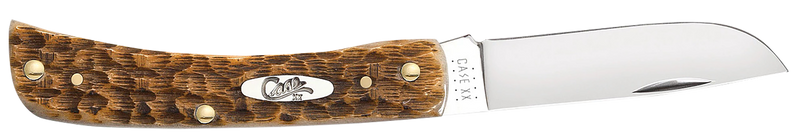 The Case Sod Buster Jr. is a compact folding knife featuring a plain edge blade and distinctive peach seed jigged amber bone handle. With a 4.5" overall length and 1.7" blade width, this knife is designed for general cutting tasks and everyday carry. The traditional slip-joint design makes it a reliable, low-maintenance cutting tool.