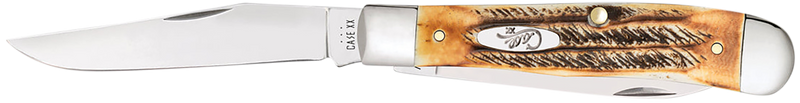 The Case Trapper features two plain-edge blades in Clip Point and Spey configurations, crafted from Tru-Sharp stainless steel with mirror polish. The 3.25" blade length and burnt dark amber bone stag handle provide a classic design suitable for general cutting tasks and outdoor use. This nail nick opening knife weighs 4 oz and measures 4.5" when closed.