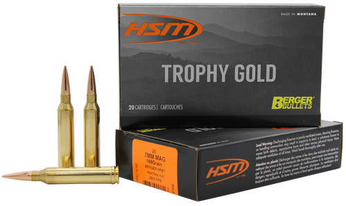 HSM Trophy Gold 7mm Rem Mag 168gr Berger Hunting VLD Match Rifle Ammo, 20 Rounds - 7MAG168VLD