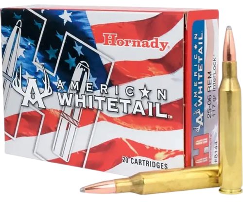 Hornady American Whitetail 25-06 Rem 117gr InterLock Boat Tail Soft Point Rifle Ammo, 20rd Box - 8144