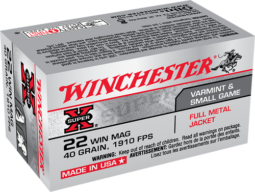 Winchester Super-X Brass 22 Win Mag 40gr FMJ 50 Round Box - X22M