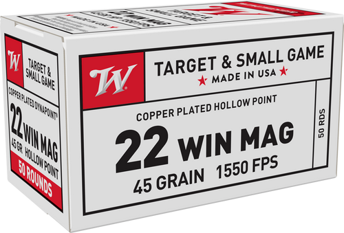Winchester USA Dynapoint Brass .22 WMR 45gr Copper Plated Hollow Point 50 Round Box - USA22M