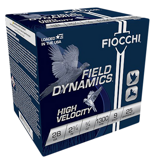 Fiocchi Field Dynamics High Velocity 28 Gauge 2.75" 3/4 oz #9 Shot 25 Round Box - 28HV9