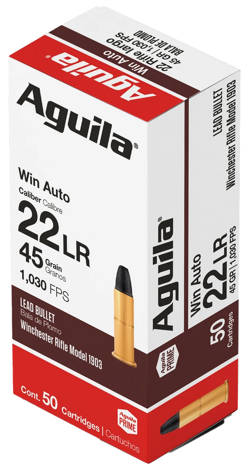 Aguila Brass .22 Winchester Auto 45gr Lead Round Nose 50 Round Box - 1B220504