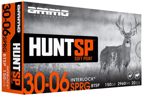 Ammo Inc Hunt 30-06 Springfield 150gr Soft Point Rifle Ammo, 20 Round Box - 3006150SPA20
