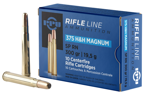 PPU 375 H&H Mag 300gr Soft Point Round Nose Rifle Ammo, 10rd - PP375S