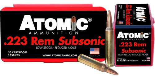 Atomic Subsonic 223 Rem 77gr Hollow Point Boat Tail Rifle Ammo, 50 Rounds - 00429