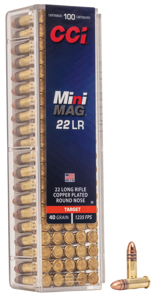 CCI Mini-Mag Brass .22 LR 40gr Copper-Plated Round Nose 100 Round Box - 0030