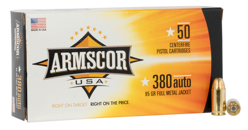 Armscor 380 ACP 95gr Full Metal Jacket Handgun Ammo, 50rd Box - FAC3802N