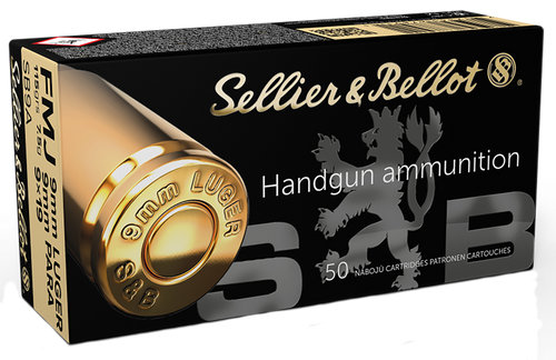 Sellier & Bellot 9mm Luger 115gr Full Metal Jacket Handgun Ammunition, 50 Round Box - SB9A