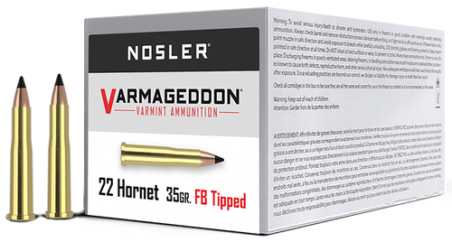 Nosler Varmageddon .22 Hornet 35gr Flat Base Tipped Rifle Ammo, 50rd Box - 41132