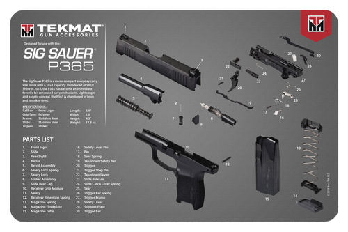 TekMat Sig Sauer P365 Cleaning Mat 11" x 17" Black - TEKR17SIG9365
