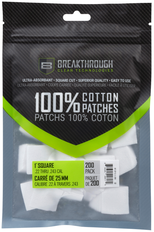 Breakthrough Clean Square Patches .22-.243 Cal 200 Pack - BTCPS1200