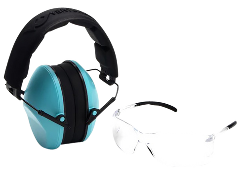 Pyramex Low-Profile Combo Kit Clear Shooting Glasses and Passive Earmuff Powder Blue - VGCOMBO410