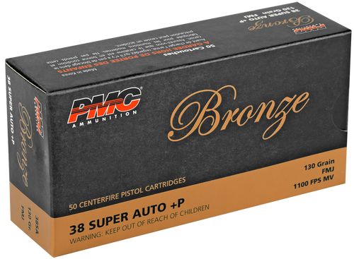 PMC Bronze 38 Super +P 130gr Full Metal Jacket Handgun Ammunition, 50rd Box - 38SA