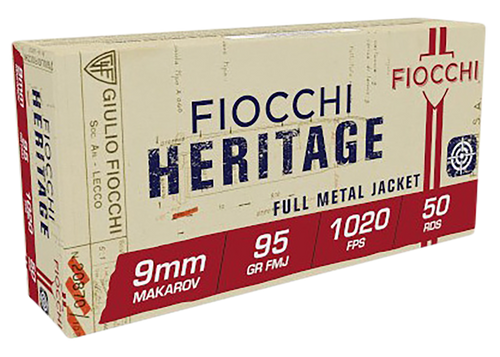 Fiocchi Heritage 9mm Makarov 95gr Full Metal Jacket Handgun Ammunition - 9MAK