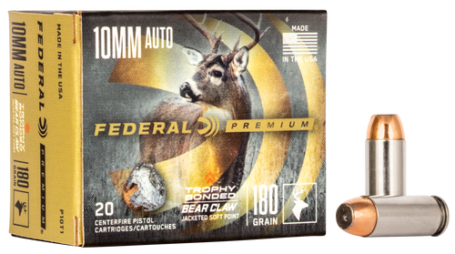 Federal Premium 10mm Auto 180gr Trophy Bonded Bear Claw JSP Handgun Ammunition, 20-Round Box - P10T1