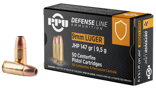 PPU Defense 9mm Luger 147gr Jacketed Hollow Point 50rd Box - PPD92