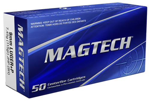 Magtech 9mm Luger +P+ 115gr Jacketed Hollow Point Handgun Ammunition, 50/Box - 9H