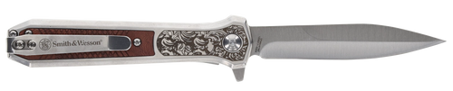 Smith & Wesson Unwavered Spring Assist Folding Dagger Knife, Silver/Brown - 1205011
