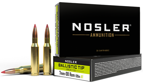 Nosler Ballistic Tip 7mm-08 Rem 120gr Spitzer Ballistic Tip Rifle Ammunition, 20rd Box - 40060