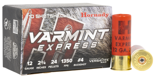 Hornady Varmint Express Plastic 12 Gauge 2.75" Lead 24 Pellets 4 Buck 10 Round Box - 86243