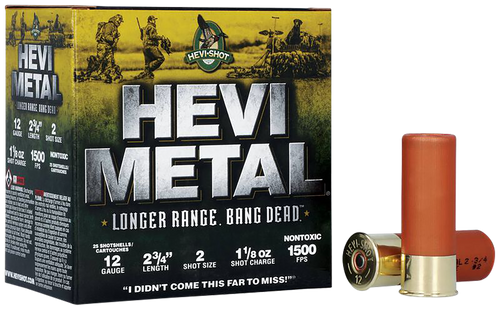 HEVI-Metal Longer Range Plastic 12 Gauge 2.75" 1 1/8oz #2 Shot 25 Round Box - HS38702